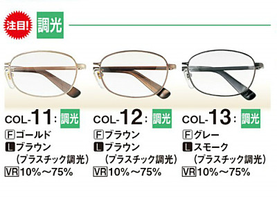レンズ:プラスチック調光 スモーク10%〜75%