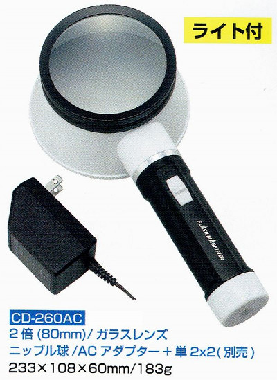 ライト付・ACアダプター 高倍率ルーペ・虫眼鏡2倍80mm 日本製 CD-260AC