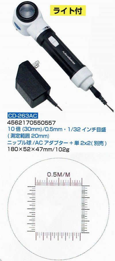 ライト付・ACアダプター 高倍率ルーペ・虫眼鏡10倍30mm 日本製 CD-263AC