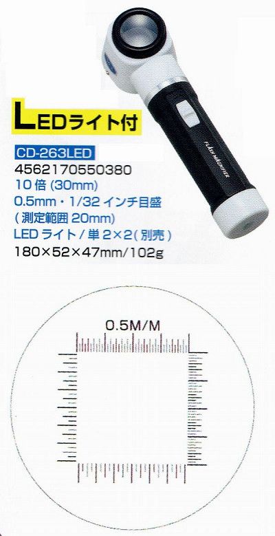 LEDライト付 高倍率ルーペ・虫眼鏡10倍30mm 日本製CD-263LED