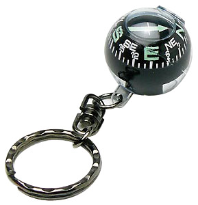 バックやポーチに取り付けたり、鍵をつけておくのに便利なキーホルダータイプの球形・ボールコンパスです。