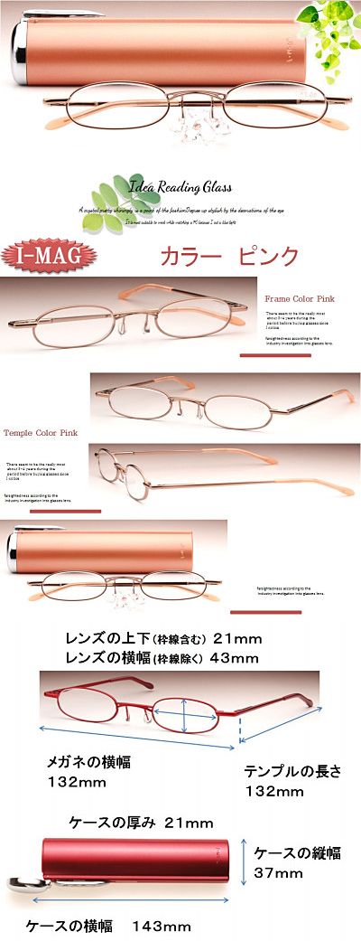 商品名:既製老眼鏡 I-MAG2 ピンク(品番変更I-MAG5-1)
