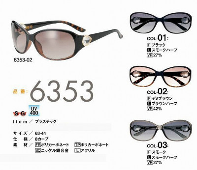 ヤングレディースプラスチックサングラス 紫外線防止 白内障術後メガネ N6353