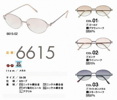 商品名:レディースメタルサングラス 紫外線防止 白内障術後サングラス N6615