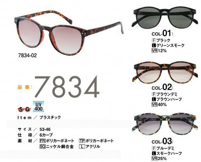 ヤングレディースプラスチックサングラス 紫外線防止 白内障術後メガネ N7834