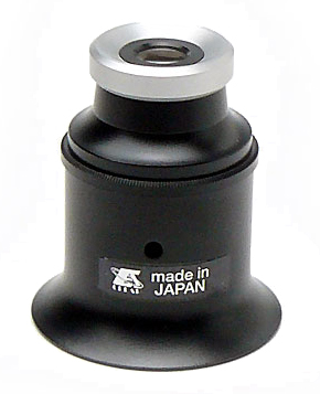 職人さんが眼のくぼみに挟んで使用するルーペなので「アイルーペ」「キズミルーペ」などと呼ばれています。