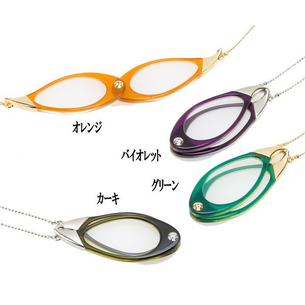 値札を見るときなどにサッと出してサッとつかえるペンダントタイプの老眼鏡(シニアグラス・リーディンググラス)。