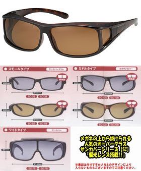 "眼鏡の上から掛けられるサングラス。スマートデザイン・軽量ボディ!!シャープなフロントデザインと弾力性のあるテンプルを採用。