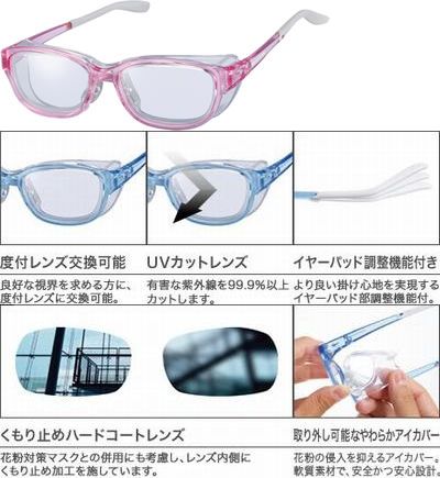 軟質素材のカバーで安全性も高く、レンズには曇り止め機能もついた花粉グラスです。