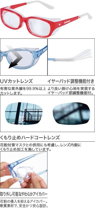 ジュニア用花粉グラス。PM2.5などの粉塵対策にも最適な子供用サイズの花粉グラス軟質素材のカバーで安全性も高く、レンズには曇り止め機能もついた花粉グラスです。