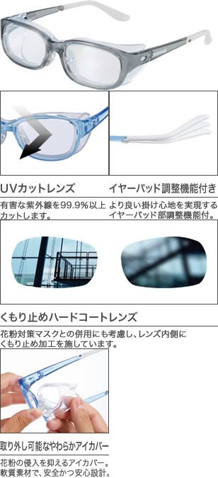 ジュニア用花粉グラス。PM2.5などの粉塵対策にも最適な子供用サイズの花粉グラス軟質素材のカバーで安全性も高く、レンズには曇り止め機能もついた花粉グラスです。