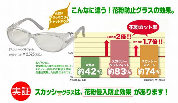 スカッシーグラスは目から体内に入る花粉量を減らすため、