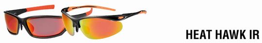 ヒートホークIRは赤外線の中でも、特に近赤外線を軽減するように制作されているため、レンズで覆われている眼やその周辺では、若干温度が下がるため、眼元が涼しく感じられ、眩しい光や眼の炎症、網膜破壊等の症状から大切な眼を守ります。