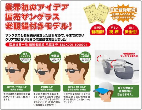 「カッコいい偏光サングラスが掛けたい。でも老眼だし…。」という、ミドル・シニア世代の悩みがなくなりました!スポーツデザイン老眼鏡入り偏光サングラスバイフォーカルスポーツ登場!!